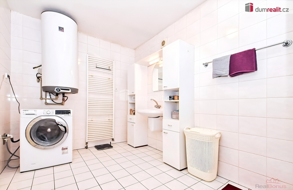 Bezproblémové parkování pro 4 auta, voda - veřejný vodovod, odpad - septik, střecha je vhodná pro FVE, pod domem je sklep (12m).