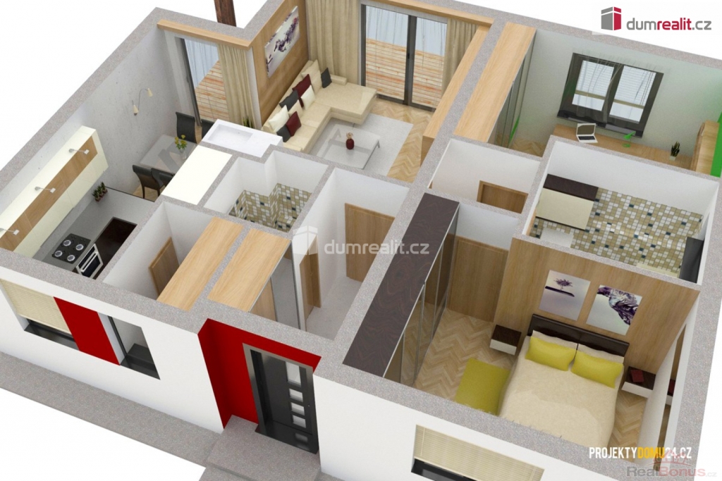 Od základové desky až po kolaudaci. Uvedená cena obsahuje základovou desku, projekt, DPH a stavba bude provedena na klíč a předána po kolaudaci k okamžitému užívání. (Součástí ceny není kuchyňská linka a světla dokážeme za zvýhodněných podmínek zajistit přes naše dodavatele). Délka výstavby od vydání stavebního povolení 12 měsíců u zděné varianty. Možnost změnit například na patrový dům, dle požadavku.