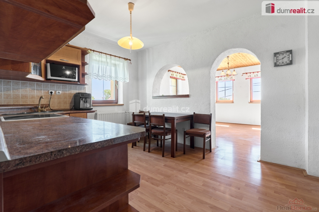 Cena vč. právních služeb a provize RK, Dumrealit.cz Vám zprostředkuje prodej prostorného rodinného domu v Tisové u Nejdku. Dům se nachází v klidné části obce na pozemku o celkové výměře 5.967 m. Tento zděný dům s kamennými základy je ze 3/4 podsklepený a má podlahovou plochu 230 m (+sklep, + půda) a prošel postupnou celkovou rekonstrukcí: fasáda vč. zateplení 8 cm, střecha, eurookna vč. parapetů, omítky vč. výmalby, podlahy, rozvody elektroinstalace, vody, a topení vč. těles radiátorů. Dispozice domu je 2x 3+1 vč. koupelen a samostatných WC. V 1.NP se nachází: zádveří, chodba vč. schodiště, obývací pokoj, kuchyně s kuchyňskou linkou na míru a vestavěnými spotřebiči, 2 samostatné pokoje, koupelna s vanou a samostatné WC. V 2.NP se nachází: chodba vč. schodiště, obývací pokoj, kuchyně s kuchyňskou linkou na míru a vestavěnými spotřebiči, 2 samostatné pokoje, koupelna vč. sprchového koutu a samostatné WC. Dům má také prostornou půdu s možností vybudování dalších obytných místností. Vytápění domu a ohřev vody je zajištěn kotlem na tuhá paliva se zásobníkem (bojler 200l - 1 rok starý). Dům má zadní bezbariérový vchod, vlastní vrt s domácí vodárnou a septik. Na pozemku se nachází kryté garážové stání pro 2 vozidla nebo podzemní dílna 60 m. Pozemek je ze všech stran oplocen a nabízí neomezené možnosti využití. Dům je připraven k nastěhování bez dalších investic. Díky ideální poloze domu máte veškerou občanskou vybavenost snadno a rychle dostupnou ve městě Nejdek cca 5 min automobilem (školy, školky, obchody, lékař, autobusové nebo vlakové nádraží). Upravené cyklostezky, turistické trasy nebo nedaleké lyžařské areály vám umožní bohaté celoroční sportovní vyžití. Tuto nemovitost lze hradit hypotečním úvěrem, který Vám rádi pomůžeme vyřídit v našem hypotečním centru. Vzhledem k tomu, že před zadáním do inzerce nebyl vyhotoven PENB, je tento dům v souladu s platným zákonem zařazen do energetické třídy G. Ev. číslo: 652129. Energetický štítek: G