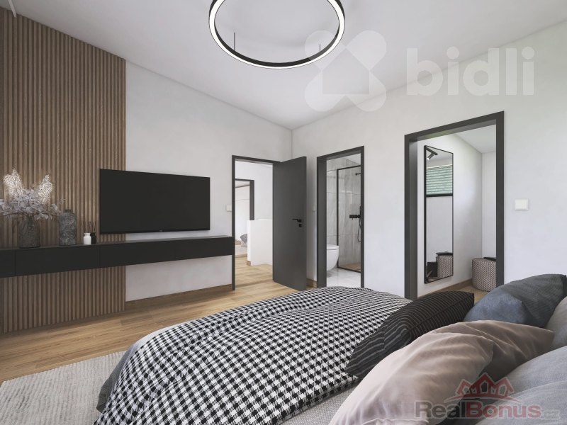 Projekt počítá s komfortním dispozičním řešením - zastavěná plocha 83,2 m2, podlahová plocha 140,6 m2, prakticky navržené podlaží s obytnou i technickou částí a podkroví, které poskytne dostatek prostoru celé rodině. Jižní orientace pozemků zaručí dostatek světla a příjemnou atmosféru v domě i na zahradě.