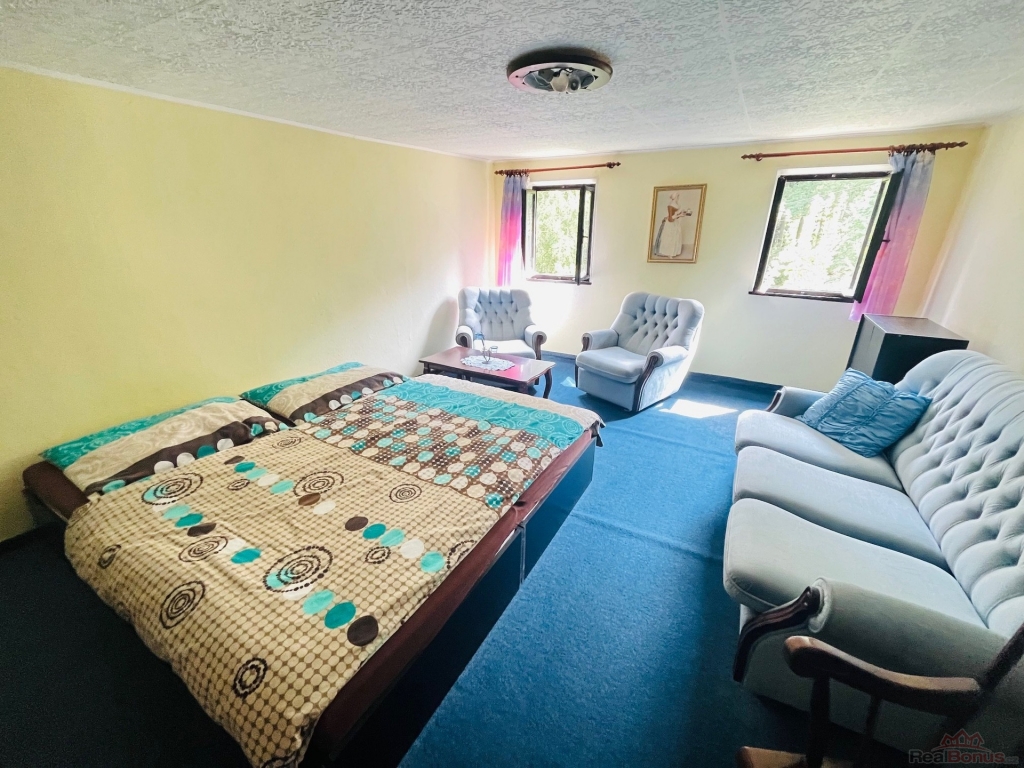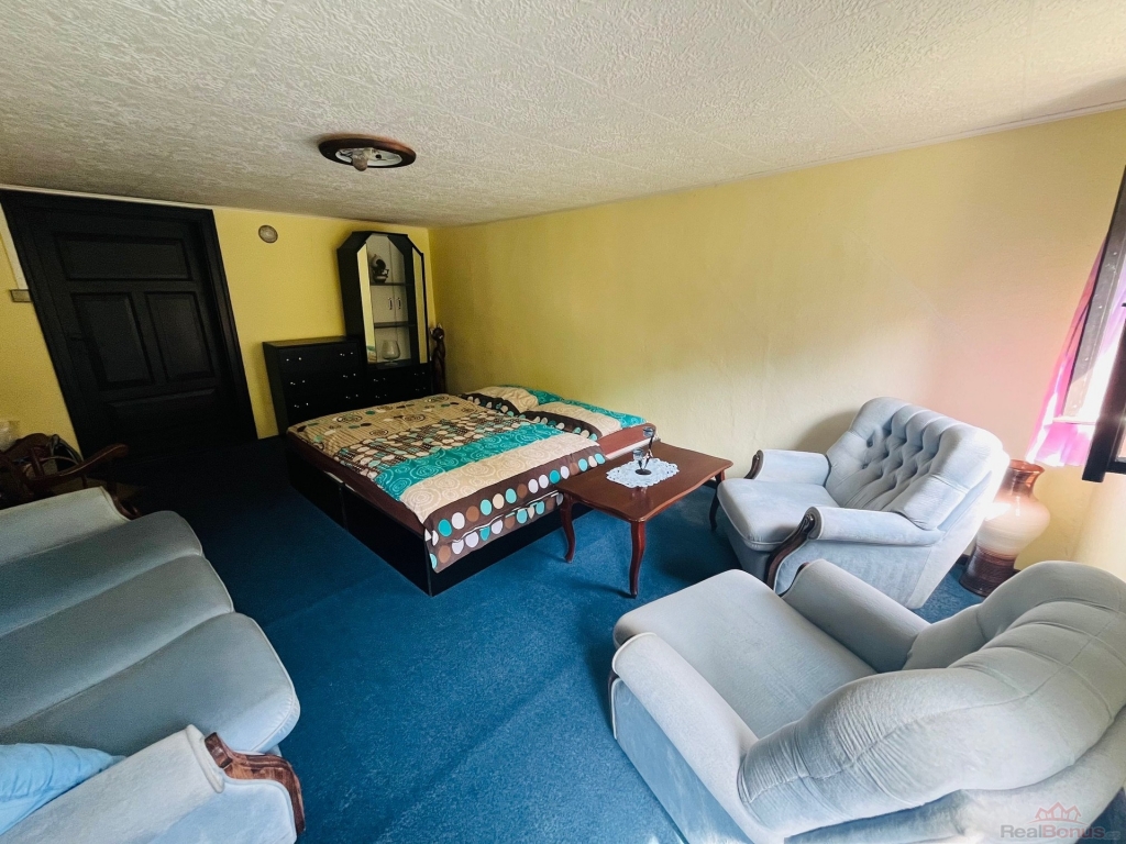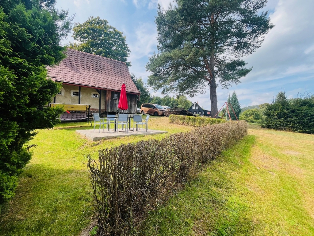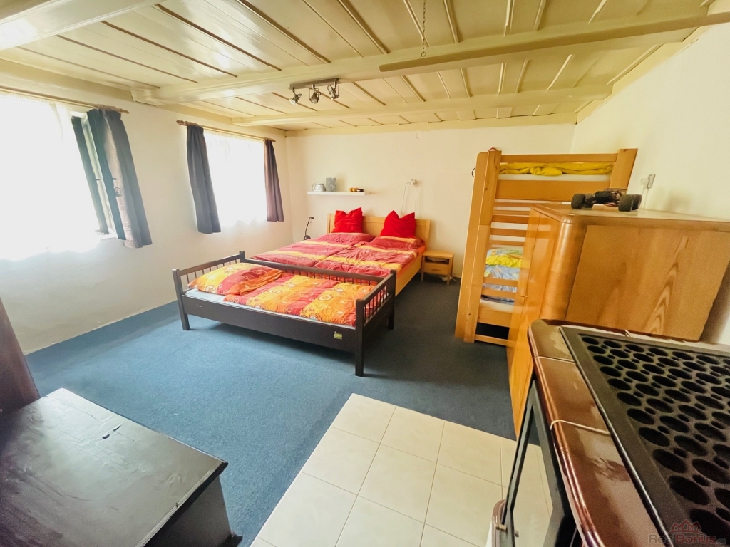 Nabízím k prodeji krásnou chalupu s velkým pozemkem v malebné obci Rožany (Nová Ves - Šluknov) nedaleko hranic s Německem. Chalupa má 3 pokoje a jeden velký obývací pokoj propojený s kuchyní a jídelnou. Kuchyni dominují krásná kachlová kamna, která vytápí právě tuto největší místnost a v dalším pokoji v přízemí jsou další kamna s výměníkem, které vytápějí koupelnu a pokoj v patře. Půda je natolik veliká, že by bylo možné tady vybudovat ještě jeden veliký pokoj.