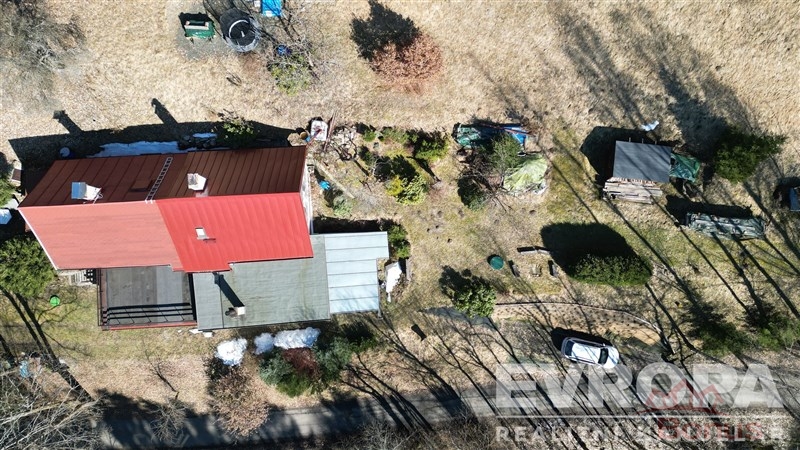 Součástí domu je také zastřešená terasa o velikosti 10 m, ideální pro posezení s výhledem do okolní přírody. Na zahradě se nachází také dřevník pro uskladnění paliva. Nemovitost se prodává včetně vnitřního i venkovního vybavení.