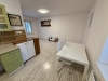 dřez, baterie, horní a dolní skříňky, prostor na pračku), jídelní stůl + 2x židle, konferenční stůl, poličky, TV stěna