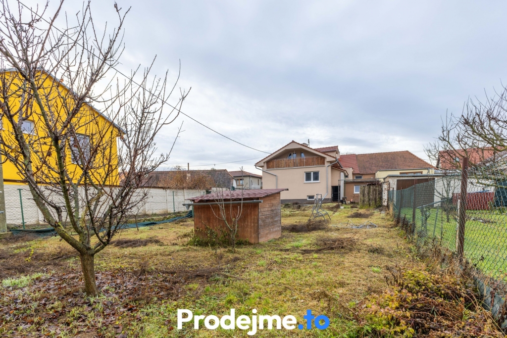Pozemek má výměru 590 m2, je rovinatý a dobře využitelný. Nachází se zde zahradní domek i menší dílna, u které je potřeba počítat s úpravou střechy. Do budoucna je možné vyřešit také vjezd na pozemek ze zadní části zahrady, je však nutné počítat s vybudováním mostku přes koryto.