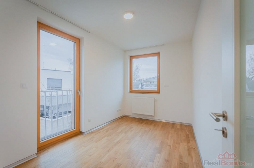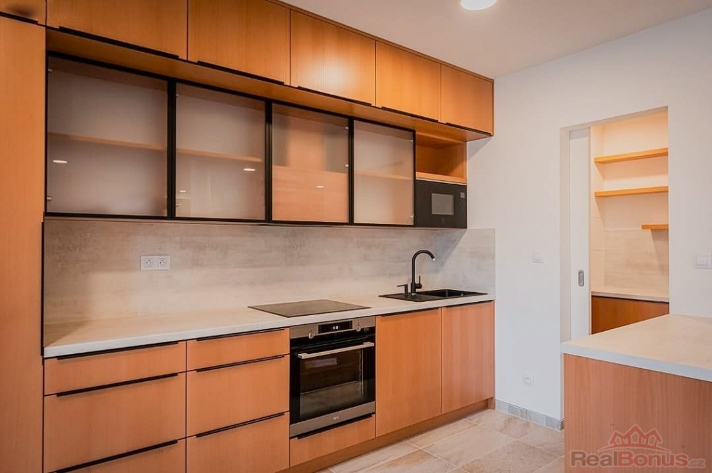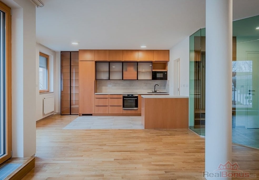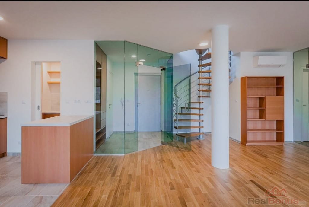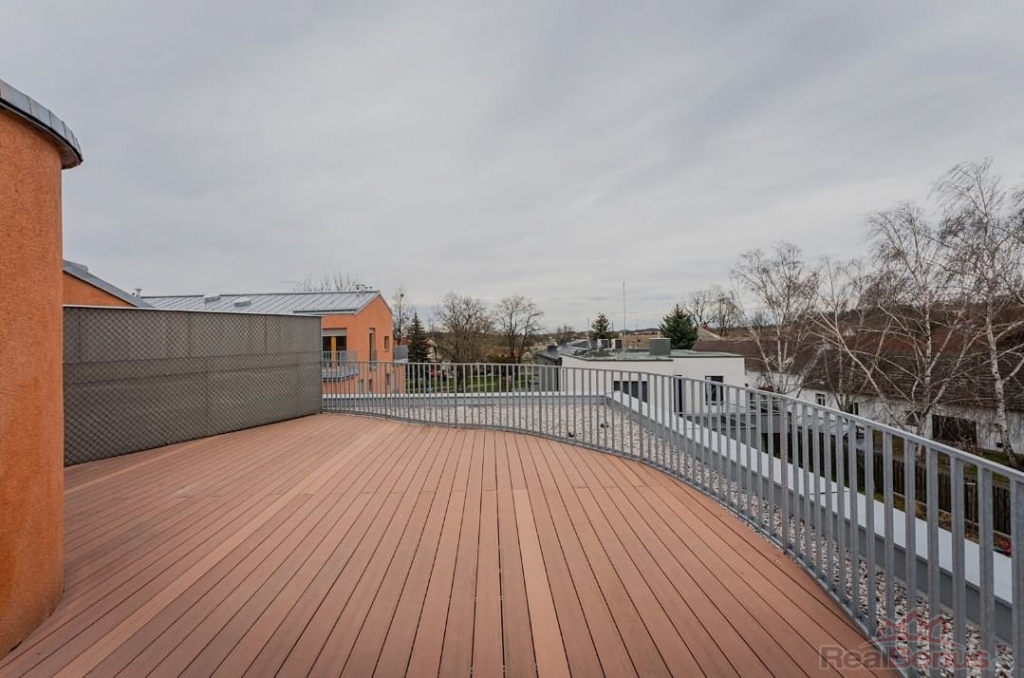 Nabízíme k pronájmu prostorný byt o dispozici 4+kk v novostavbě z roku 2022 v ulici Na Návsi v Dolních Měcholupech. Byt má užitnou plochu 114 m2 + lodžie 4,3 m2 + terasa 40,7 m2. K bytu náleží dvě garážová stání v suterénu objektu. Celý byt je vybaven klimatizací.