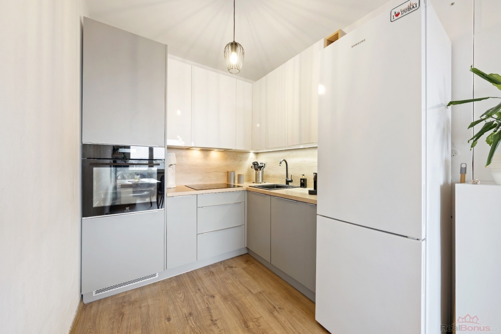 Byt je prakticky řešený tak, aby se v něm dobře žilo ? otevřený obývací prostor s kuchyní je místem, kde se potkává každodenní život. Ať už si dáte rychlou ranní kávu, nebo večer posedíte s přáteli, tenhle prostor je přesně na to.