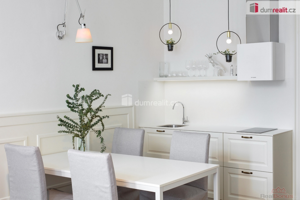 + služby, Dovolujeme si Vám nabídnout k pronájmu krásný, světlý a plně vybavený apartmán Havel s dispozicí 2+kk o rozloze 50 m, situovaný ve 2. patře historické budovy v ulici Plzeňská. Apartmán zaujme především svým vzdušným interiérem s vysokými stropy a promyšleným řešením prostoru. Dominantou bytu je prostorná obývací část s kuchyní vyrobenou na míru, doplněná o kvalitní truhlářské prvky, které podtrhují celkový charakter interiéru. Dispozice zahrnuje samostatnou ložnici orientovanou do klidného vnitrobloku, která zajišťuje maximální soukromí a klid. V předsíni se nachází praktická walk-in šatna a technické zázemí s pračkou a sušičkou. Byt se nachází ve 2. patře bez výtahu, parkování je možné v garážích přímo v domě. Lokalita nabízí výbornou dopravní dostupnost tramvajová zastávka U Zvonu je vzdálena pouhých 50 metrů a stanice metra Anděl je dostupná do 5 minut chůze, přičemž v okolí naleznete kompletní občanskou vybavenost. Nájemné činí 35 000 Kč měsíčně, plus služby 5 000 Kč měsíčně a vratná kauce je stanovena ve výši 35 000 Kč. Pro zájemce o kratší pobyty je cena při ubytování do jednoho měsíce stanovena na 2 840 Kč za noc, při pobytu do jednoho týdne pak na 3 190 Kč za noc. Tento jedinečný byt k dispozici k nastěhování od 19. 5. Prohlídky jsou možné ihned. Ev. číslo: 655064. Energetický štítek: G