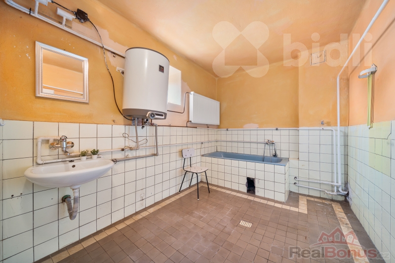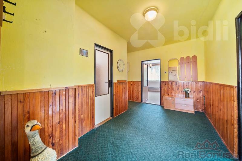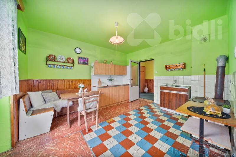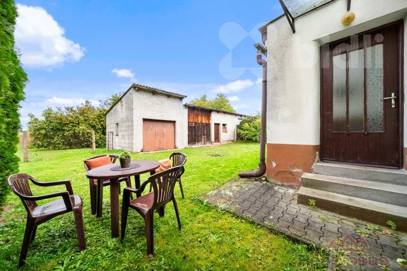 Dispozici tvoří veranda, vstupní chodba, komora, prostorná kuchyně s kamny, obývací pokoj, dvě ložnice, koupelna s vanou a toaleta. Místnosti jsou světlé a prostorné, dům tak poskytuje příjemné rodinné bydlení nebo útulné zázemí pro rekreaci. Výhodou je možnost rozšíření o podkroví a úprava celého domu dle vlastního vkusu. Dům zároveň splňuje podmínky pro případné využití některých dotačních programů na rekonstrukce, například "Nová zelená úsporám" či "Oprav dům po babičce", což může znamenat úsporu nákladů na rekonstrukci. Na pozemku se dále nachází garáž a kůlna. Vytápění je řešeno plynovým kotlem, ohřev vody bojlerem, odpady jsou svedeny do jímky. V kuchyni jsou navíc kamna, která navozují útulnou atmosféru.