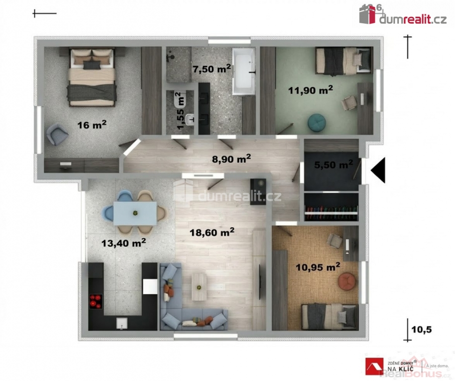 | Celková podlahová plocha | 115 m² |