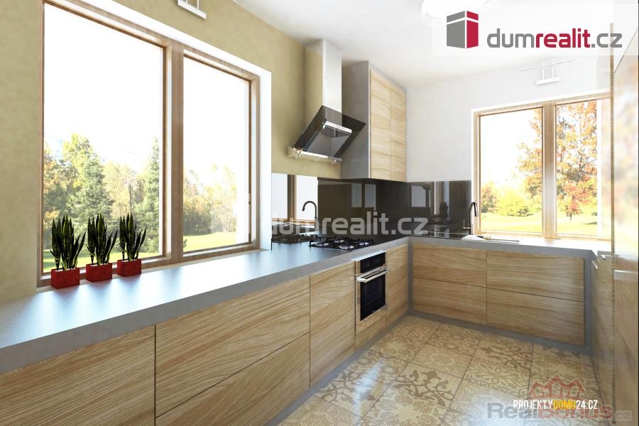 Cena včetně stavby RD, IS, příjezdové komunikace a DPH., Dumrealit.cz Vám zprostředkuje exkluzivní prodej domu na klíč typu Markéta o velikosti 4+kk o podlahové výměře 94 m v Uherském Brodě části Těšov. Součásti uvedené ceny, která již zahrnuje DPH je dům v provedení na klíč, inženýrské sítě (mimo plynu), příjezdová komunikace, veřejné osvětlení, připojené místo EDG (EON), pozemek a veškeré projektové práce a stavebního povolení. Pozemek (č.1 a 2) o rozloze 1190 m je na klidném místě obce se skvělou dostupností do Uherského Brodu či Luhačovic. Šíře pozemku je 22 m. Navíc k nabízenému pozemku je možnost přikoupit i podíl na pozemku za zahradou p.č 1144/1. Dle územního plánu jsou pozemky vedeny a schváleny pro rodinné bydlení. Parametry uvedeného domu: užitná plocha 94 m zastavěná plocha domu 115 m. Dispozici v domě nebo celkově upravit rozměr domu je umožněno. Možnost změnit na jiný dům dle vlastních požadavků. V projektu jsou možné variabilní úpravy dispozice (posuny příček či oken). Patrový dům je ideální pro 5 člennou rodinu s nízkými provozními náklady. Uvedená cena je za pozemek, kompletní stavbu domu v provedení na klíč, projektové dokumentace, vyřízení stavebního povolení, základové desky až po kolaudaci. V uvedené ceně můžete počítat také s finálními povrchovými úpravami exteriéru i interiéru, a to včetně elektroinstalací, sanitárního vybavení s bateriemi, interiérovými dveřmi včetně obložek a vytápění bude řešeno teplovodním podlahovým topením v kombinaci tepelného čerpadla se 180L zásobníkem na teplou vodu. Dle dohody změníme systém vytápění nebo vystavíme komín pro krbové kamna nebo pro využití krbové vložky. Kryté garážové stání spojené s domem nebo venkovní krytou či nekrytou terasu za příplatek. Pro náročnější klienty máme nabídku nadstandardního vybavení chytré domácnosti, klimatizaci, externí žaluzie, rolety, rekuperaci nebo fotovoltaiku. Doba výstavby cca 12-13 měsíců od vydání stavebního povolení a stavbu zahájíme do 10 dnů od jeho vydání. Smlouvy o dílo zašleme na vyžádání včetně položkového rozpočtu. V blízkosti je veškerá občanská vybavenost. Financování zajišťujeme a můžete využití našich služeb, při prodeji Vaší nemovitosti. Doporučuji jednak prohlídku pozemku, tak nabízeného domu hned v sousedství v provedení na klíč. Dle zájmu zašleme položkový rozpočet. Pozemky a domy se dají různě kombinovat. Více informací u makléře. Ev. číslo: 653924. Energetický štítek: A (45 kWh/m2/rok).