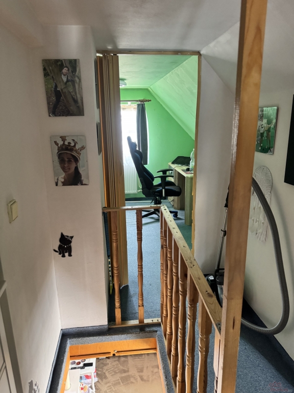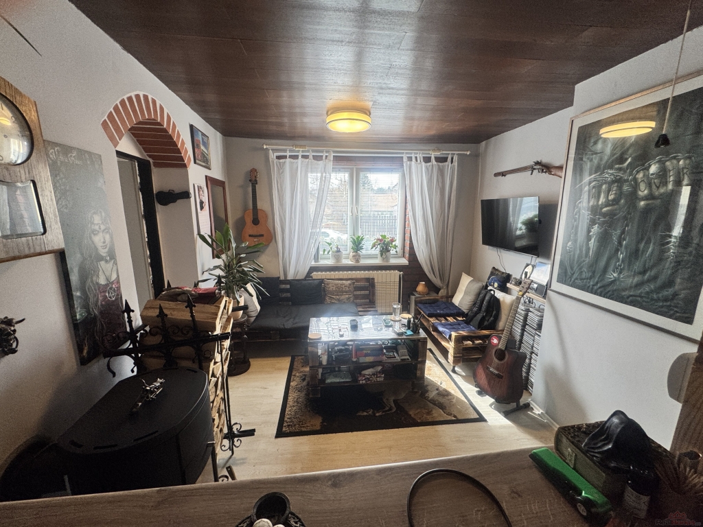 Do domu se vstupuje hlavní chodbou, ze které jsou přístupné jednotlivé místnosti. Na obytnou část navazuje vstup do dvora, kde je umístěn i vstup do menšího sklepa o výměře cca 8m? . Půda je přístupná po venkovním schodišti a nabízí další úložný prostor. Obytná část domu se skládá z obývacího pokoje s kuch. koutem o výměře 16 m?, pokoje 19 m?, ložnice 17m?, koupelny s WC 6 m? a chodby 5,5 m? WC 1,5m?, půdorys domu ve fotogalerii.