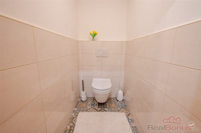Koupelna je vybavena vanou a přípojkou na pračku. Toaleta je oddělena. V bytě jsou nové rozvody (měď/plast) a plastová okna s dvojskly. Ohřev vody zajišťuje vlastní bojler, vytápění je řešeno centrálně z domovní kotelny s plynovým kotlem.