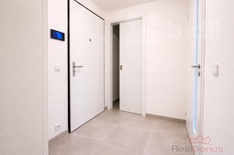 Srdcem bytu je obývací pokoj s kuchyňským koutem, který vytváří otevřený a vzdušný obytný prostor pro každodenní život. Ložnice nabízí dostatek soukromí a klidu. Praktickým benefitem je také komora, kde je připravené místo pro pračku i sušičku - detail, který v běžném provozu oceníte každý den.
