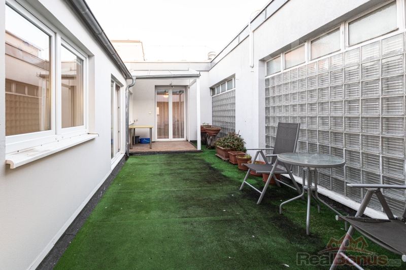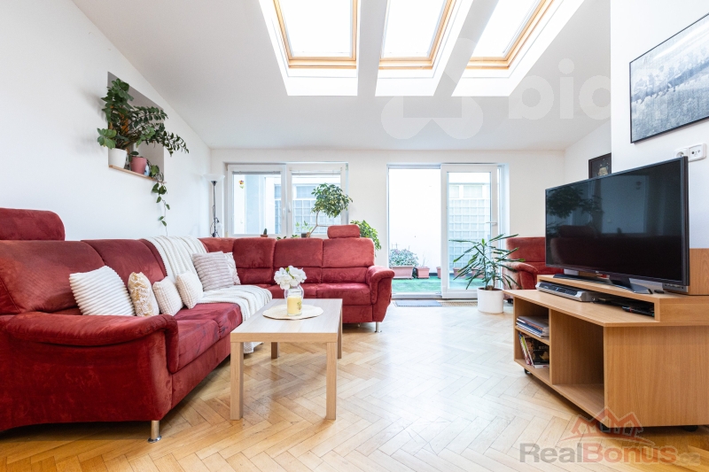 Celková užitná plocha činí 159 m2, z toho terasa zaujímá zhruba 25 m2 a sklep 4 m2. Byt prošel v roce 2001 kompletní rekonstrukcí zahrnující podlahy, dveře, kuchyňskou linku, koupelnu, topení i všechny rozvody. V roce 2009 byla část terasy odborně zastřešena a elegantně propojena s obývacím pokojem, který se tím výrazně zvětšil. Atmosféru domova doplňuje plně funkční krb a pro větší komfort i bezpečnost je k dispozici vestavěný trezor s klíčem a kódem.