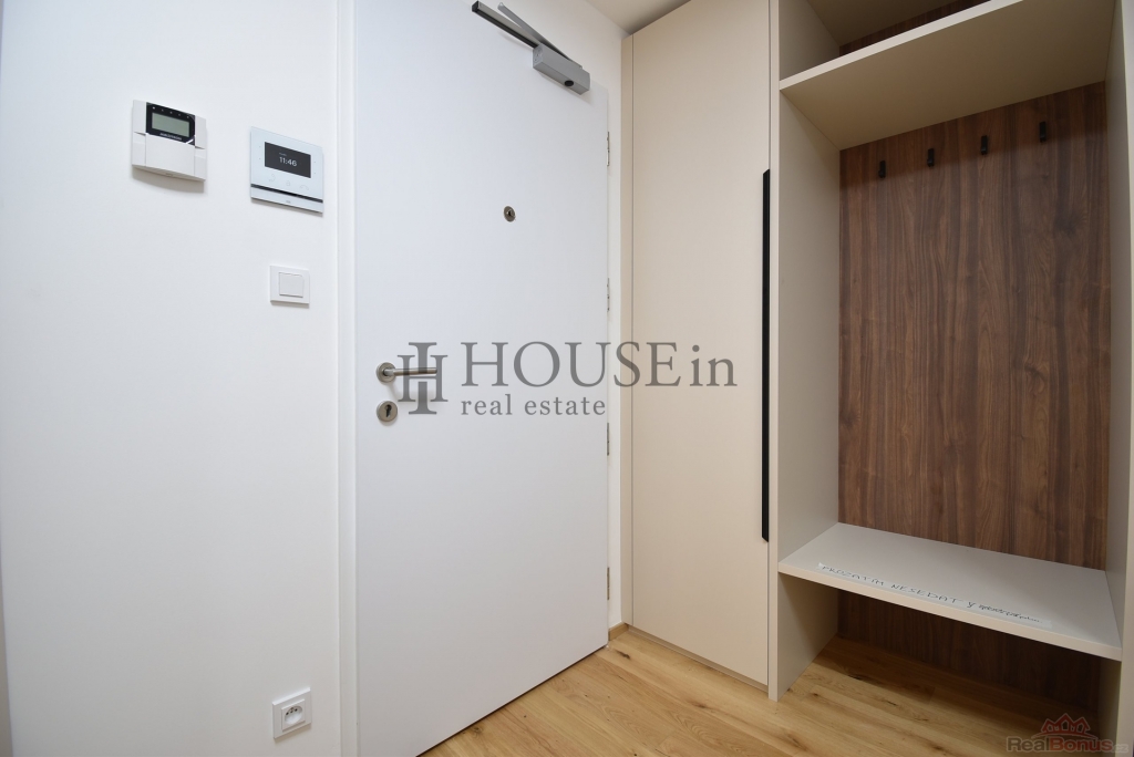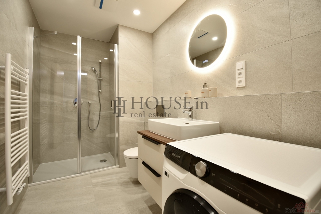 Byt je kompletně zařízený a připravený k okamžitému nastěhování. K dispozici je kuchyňská linka se spotřebiči, konkrétně elektrická trouba, mikrovlnná trouba, lednice s mrazákem, myčka a digestoř. Součástí vybavení je také moderní nábytek ? dvoulůžková postel s matrací, psací stůl se židlí, konferenční stolek, dvě křesla, jídelní stůl se dvěma židlemi a vestavěné skříně v předsíni. Komfort bydlení zvyšuje podlahové vytápění v koupelně, předokenní žaluzie, alarm, videotelefon, optický internet, pračka a bezpečnostní skla v oknech.