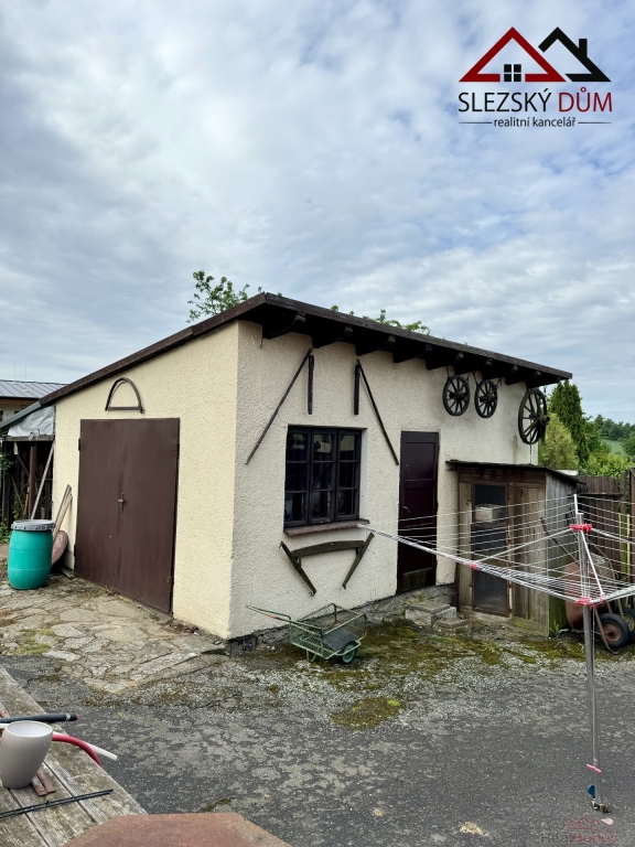Součástí zahrady je zděná garáž pro jeden automobil, na ni navazuje zpevněná příjezdová cesta ze silnice. Parkování je tedy vyřešeno pohodlně v rámci pozemku. Navíc je součástí prodeje také druhá, samostatně stojící garáž o zastavěné ploše 19 m2, umístěná na vlastním menším pozemku naproti domu ? poskytuje další kryté stání či skladovací prostor (např. na zahradní techniku). Celý pozemek je přístupný z obecní komunikace a nabízí dostatek soukromí i prostoru pro volnočasové aktivity.