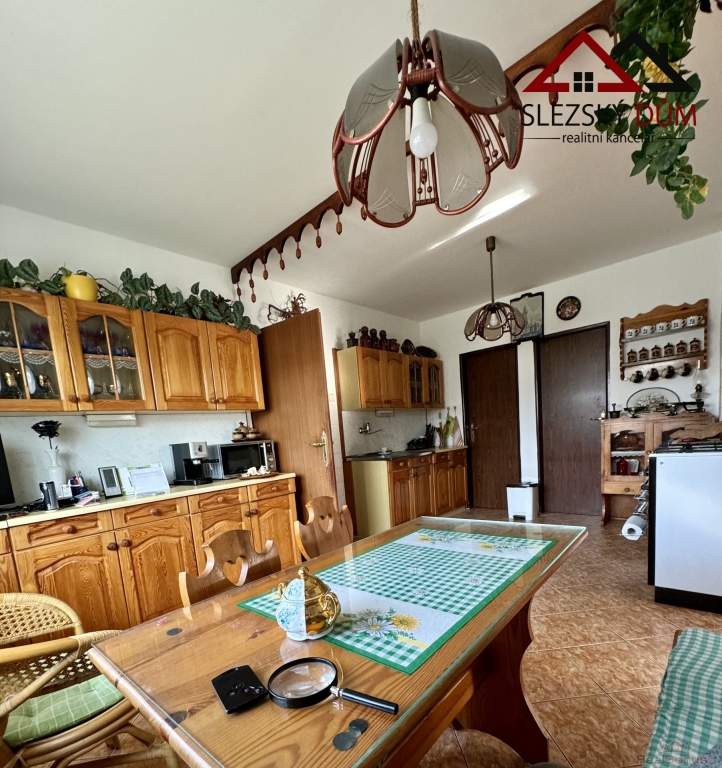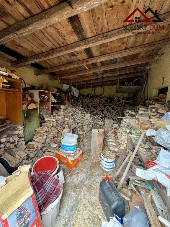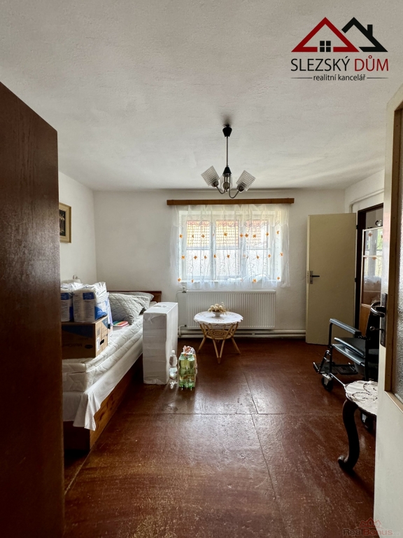 Dům je přízemní, samostatně stojící, z malé části podsklepený, s neobytným podkrovím. Dispozičně je řešen centrální chodbou, která rozděluje přízemí na dvě bytové jednotky ? větší a menší, každou s vlastní kuchyní, koupelnou a WC. Toto uspořádání je ideální pro dvougenerační bydlení nebo kombinaci vlastního bydlení a pronájmu části domu. Dům má také menší sklep, který poslouží jako praktický úložný prostor (např. na potraviny). Na obytnou část navazuje prostorná stodola (zastavěná plocha cca 73 m2), využitelná jako dílna, sklad či garážové stání pro další vůz.