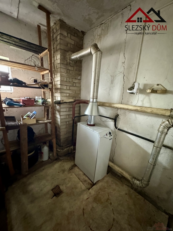 Dům je napojen na všechny hlavní sítě: veřejný vodovod, elektřinu, plyn i obecní kanalizaci. Vytápění zajišťuje plynový kondenzační kotel napojený na ústřední topení (radiátory), který zároveň slouží i pro ohřev teplé vody. Komín je vyvložkovaný (připraven pro bezpečný odvod spalin). Elektroinstalace v domě je původní hliníková, rozvody vody jsou vedeny v kovových (litinových) trubkách ? obojí plně funkční.