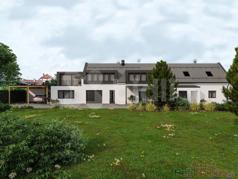 Dům je navržen pro dvougenerační bydlení, což znamená dvě samostatné bytové jednotky o dispozici 4+1. První jednotka nabízí pohodlí dvou koupelen a dvou šaten, které zajistí dostatek úložného prostoru. Druhá jednotka se pyšní terasou s výhledem do zahrady, garáží a dokonce ateliérem či dílnou - ideální pro vaše koníčky nebo práci z domova.
