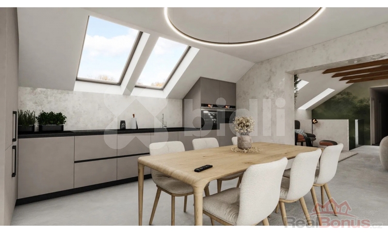 V galerii jsou vyobrazeny skutečné fotografie a dále vizualizace vykreslené grafikem pouze pro ilustraci a lepší představu, jak by se dal prostor zrekonstruovat a využít. Navrhovaný stav není zahrnutý v ceně.