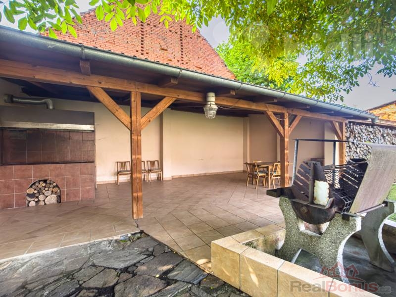 Napojeno je kryté parkovací stání, k dispozici pergola s grilem, kterou pěkně stíní vzrostlý ořech.