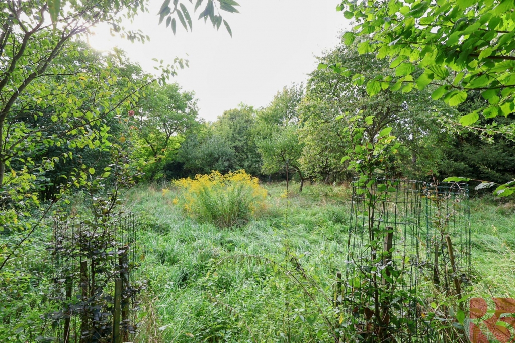 K domu je zahrada o rozloze 2 875m2 jen 30 m od domu, situovaná na hrázi rybníka s malým potůčkem, osázená ovocnými stromy, ideální k chovu zvířat, nebo pěstování zahradních a rostlinných plodin.