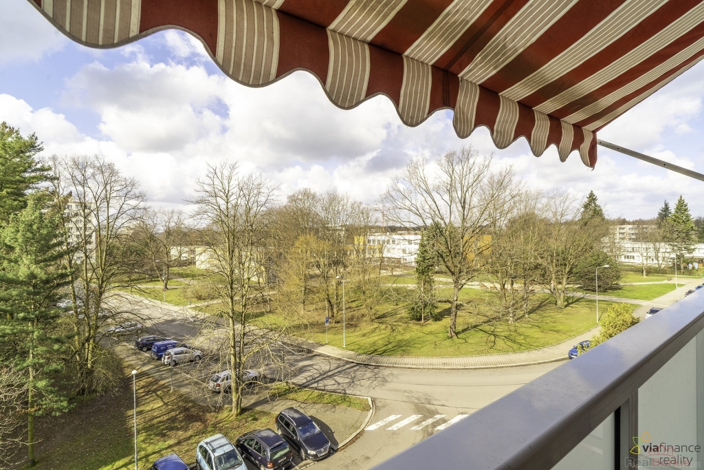 Součástí bytu je také balkon o velikosti cca 4 m2 s markýzou, který poskytuje příjemné místo pro odpočinek. K dispozici je rovněž sklep, který nabízí praktický úložný prostor.