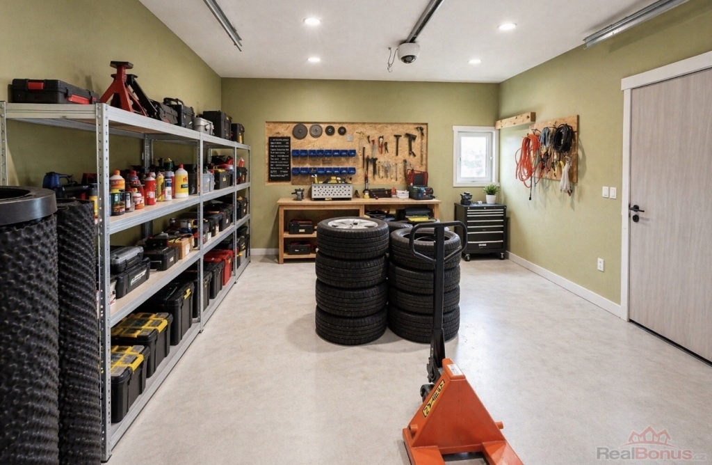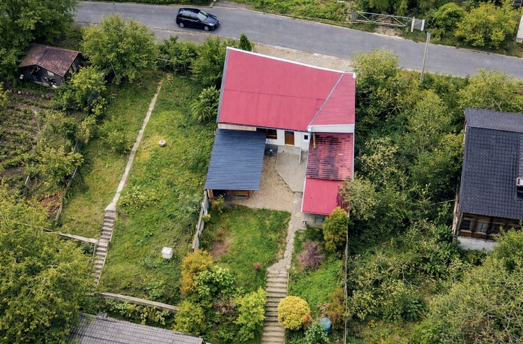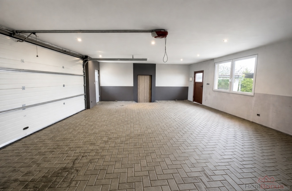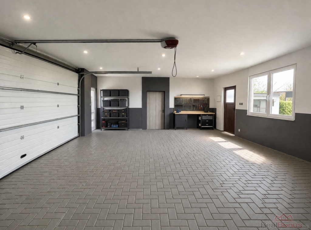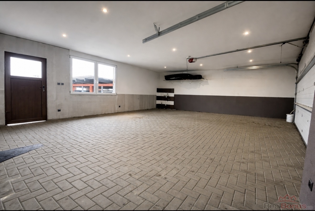 Na pozemku nyní stojí stavba z roku 2017, která dosud sloužila jako prostorná dvougaráž s dílnou o rozloze 80m2.
