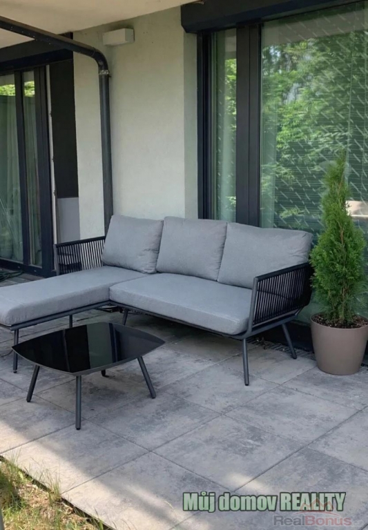 Velkou předností jsou panoramatická okna a přímý vstup na prostornou soukromou terasu, která nabízí dostatek místa pro relax, grilování nebo pěstování rostlin. Díky své velikosti je vhodná i pro rodiny s dětmi.