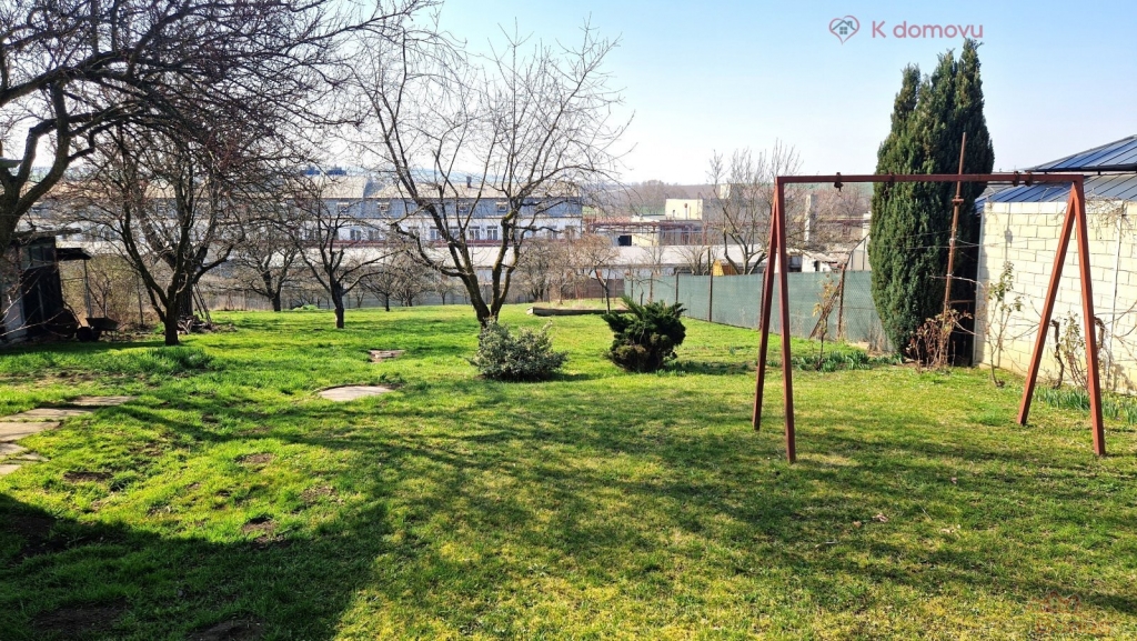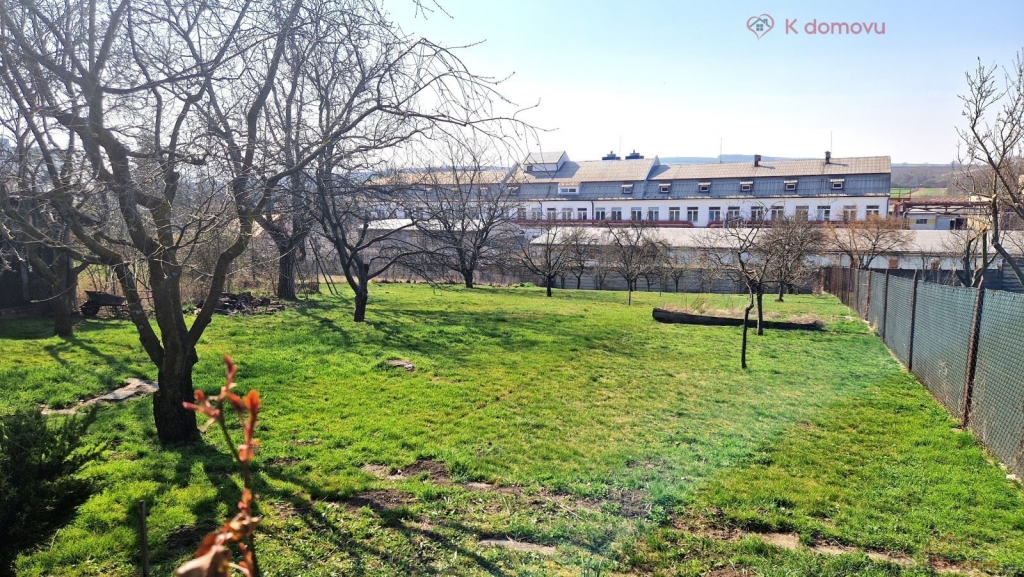 Za domem je krásná velká zahrada s ovocnými stromy, mírně se svažující k jihu. Je celodenně krásně osluněna.