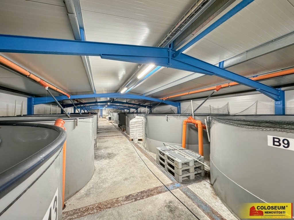V hale je umístěna technologie pro odchov ryb a 4 funkční vysokokapacitní biologické čističky. Objem chovných nádrží je přibližně 530 m?, objem biofiltrů s bioelementy je přibližně 280 m?. Množství vody je dostatečné k jakémukoliv chovu ryb. Vybavení je součástí prodeje. V případě zájmu může být po dohodě s majitelem demontováno a hala bude předána kompletně vyklizená.