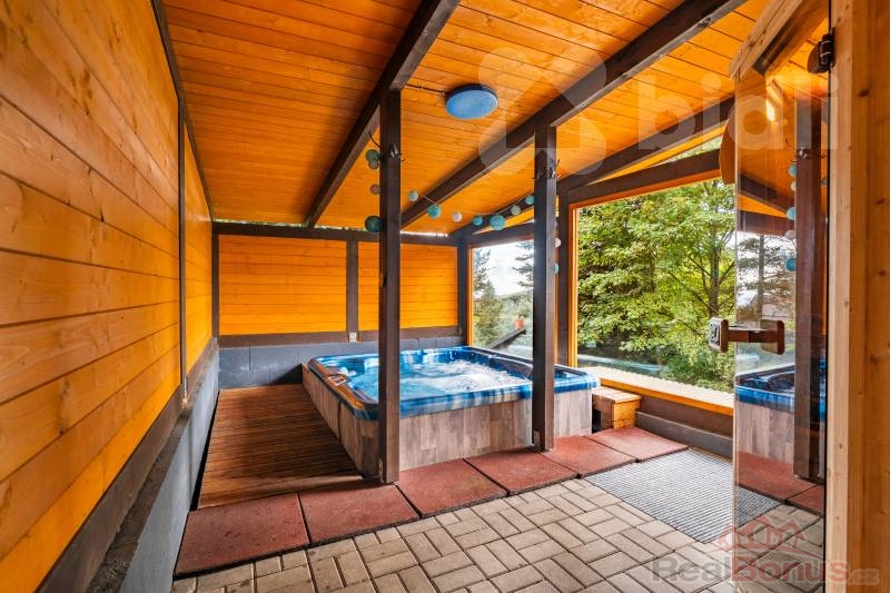 O relaxaci se postará vlastní wellness se saunou a vířivkou s výhledem do krajiny. V létě k posezení lákají dvě prostorné terasy, ideální pro grilování nebo odpočinek na slunci.