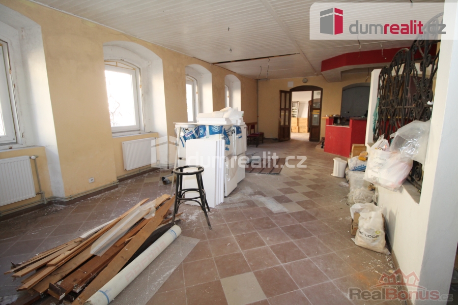 , Dumrealit.cz Vám zprostředkuje vyjímečnou příležitost koupě 1/2 domu vhodného na provozování pensionu, hotelu, ubytovny či dlouhodobých a krátkodobých pronájmů. Celková plocha objektu je cca 1385 m s tím, že každé patro nabízí 395 m, je zde 14 pokojů, každé se svým sociálním zařízením a navíc bytová jednotka 4+kk také se svou koupelnou, toaletou a technickou místností. Do objektu jsou zavedeny inženýrské sítě včetně vodovodu, kanalizace, elektřiny, plyn je na hraně pozemku. Vytápění je koncipováno na plynový kotel (není instalován) s tím, že v domě jsou kompletně nové rozvody topení (nejsou osazeny radiátory). V celém domě jsou plastová okna. Pozemek nabízí 395 m zastavěné plochy a 199 m tvoří oplocená zahrada, kde by byla ideální terasa pro venkovní posezení, je přístupná jak vchodem jak přímo z restaurace tak i z ulice. V přízemí objektu je hlavní vchod, restaurace, bar, prostor vhodný pro provozování vinárny, balneo procedur či kosmetiky, masáží, případně na jiné podnikání apod., dále je zde prostorná kuchyně. V prvním patře jsou pokoje a terasa, dále ve druhém patře jsou opět pokoje a byt 4+kk. V suterénu jsou mrazící místnosti, úložný prostor, technické místnosti, kde jsou umístěny bojlery na ohřev teplé vody, sklad, prádelna. V Lázních Kynžvart momentálně chybí restaurace, je zde poptávka po ubytovacích a stravovacích službách. Lázně Kynžvart byly vyhlášeny klimatickými lázněmi, vyvěrá zde několik léčivých pramenů, je zde bazén, sauna, možnost procházek. Pro děti je zde krásná pohádková cesta s několika stanovišti vedoucí lesem, fitness hřiště, v blízkosti je supermarket Coop. V Lázních Kynžvart je krásný hojně navštěvovaný státní zámek Metternich a golfové hřiště, které celoročně lákají turisty z celé ČR což tvoří základ pro dobou návštěvnost. Parkování je možné na přilehlém parkovišti naproti objektu. Do deseti minut jízdy jsou vzdáleny Mariánské Lázně, které se staly součástí kulturního dědictví UNESCO. Zde je veškerá občanská vybavenost, supermarkety, úřady, banky a další. V okolí Kynžvartu je bezpočet turistických tras vedoucích na např. Kladskou, Prameny, přírodní rezervaci Vlček, Smraďoch, horu Dyleň (údajné centrum Evropy), trasy pokračují po perfektních cyklostezkách dále do Německa. Cena zahrnuje provizi a právní servis. Ev. číslo: 653004. Energetický štítek: G (112 kWh/m2/rok).