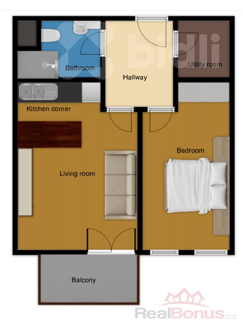 | Dispozice bytu | 2+kk |