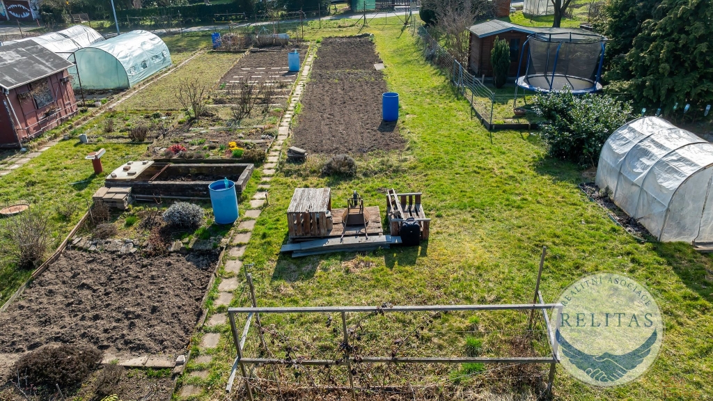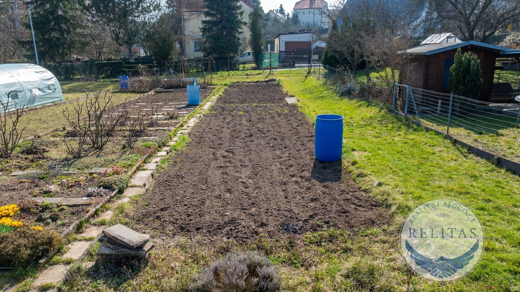 Pozemek je rovinatý, plně oplocený a orientovaný na jižní stranu, díky čemuž je celodenně prosluněný ideální podmínky pro pěstování zeleniny, ovoce i okrasných rostlin. Půda je pečlivě obhospodařovaná, záhony jsou zorané a připravené k okamžitému využití. Uprostřed pozemku vede zpevněná cestička z obrubníků, která přehledně člení plochu na jednotlivé pěstební zóny.