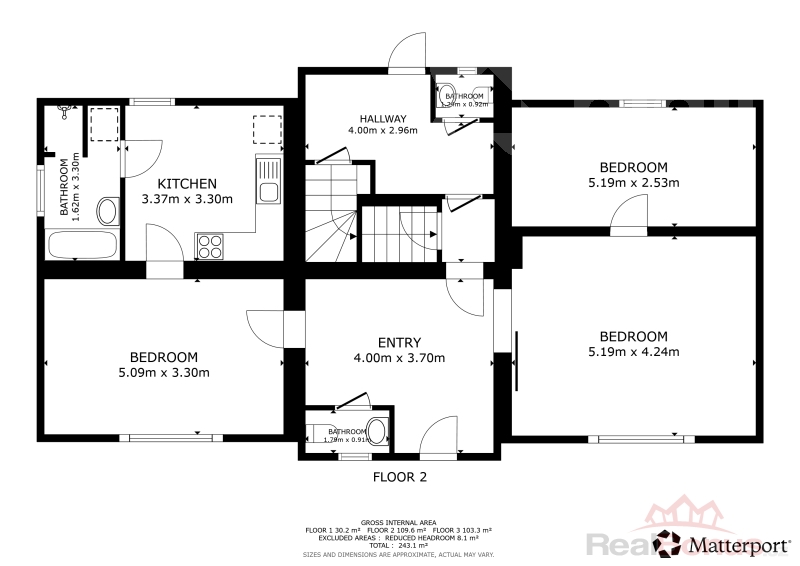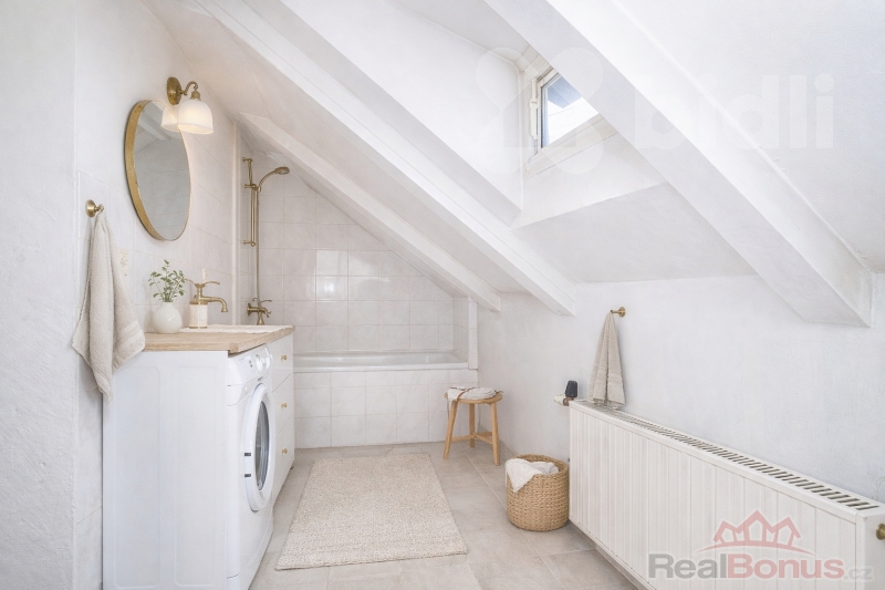 V patře je kuchyně, samostatné WC, koupelna s vanou i sprchovým koutem, prostor pod šikminou, kde je střešní okno u kterého lze vybudovat prostor na pračku, sušičku a třeba šatnu. Tento prostor je i na opačné straně. Dále jsou zde čtyři další pokoje.