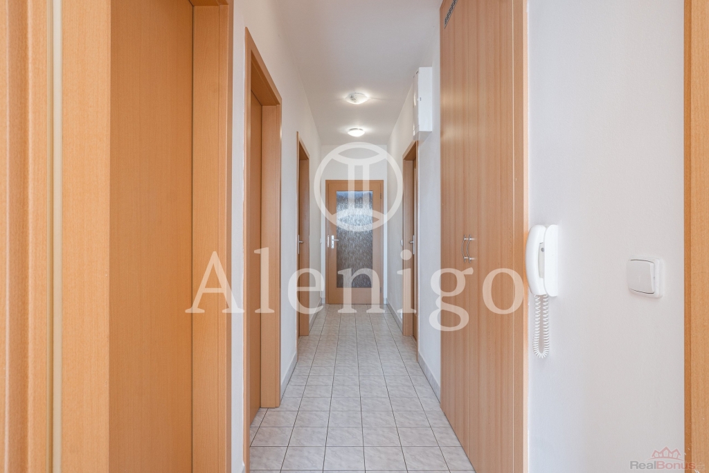 Dispozice bytu nabízí komfortní bydlení s důrazem na praktičnost: obývací pokoj s balkonem orientovaný na jih s volným výhledem do zeleně, ložnice a kuchyň orientované na západ, kuchyňská linka vybavená sporákem a lednicí, koupelna s vanou, samostatná toaleta s umyvadlem, praktická komora v bytě. Vytápění je řešeno vlastním elektrokotlem. Měsíční náklady činí cca 4.500 Kč + elektřina.