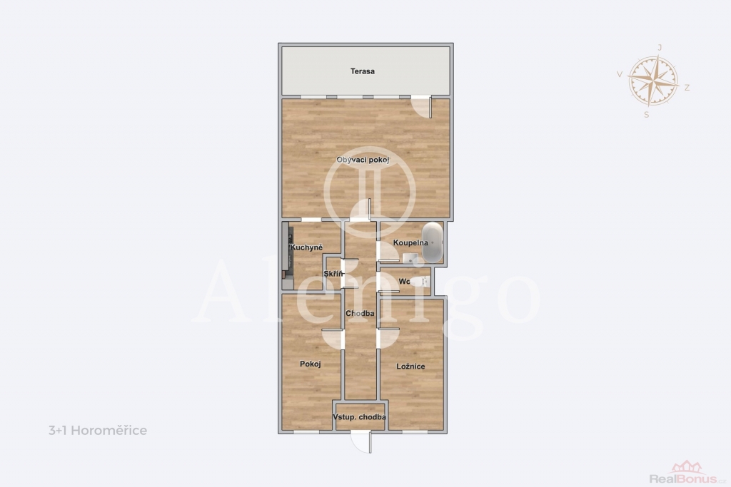 Nabízíme k prodeji družstevní byt o dispozici 3+kk s balkonem a garážovým stáním, o celkové ploše 72 m2 (byt 61,5 m2, balkon 10,6 m2, garážové stání v 1. podzemním podlaží), situovaný v klidné části obce Horoměřice, okres Praha-západ, ulice Komenského.