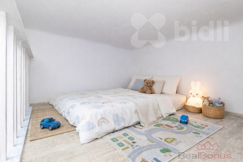 Celková užitná plocha činí 35,1 m² + 8,3 m² spací patro, které efektivně rozšiřuje obytný prostor. K jednotce dále náleží sklep v přízemí o velikosti 4,5 m² s oknem, vhodná například jako ateliér, pracovna nebo další pronajímatelný prostor.