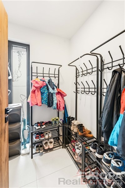 Dispozice domu 5+kk je velmi prakticky řešená. Je využit každá m2 plochy domu. V domě najdete jak praktickou vstupní šatnu, komoru pod schody, tak i technickou místnost s pračkou a sušičkou.