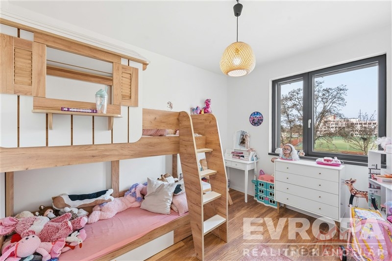 1.Patro: chodba, 2 dětské pokoje, koupelna s vanou, samostatné WC, technická místnost, velká ložnice s mezonetovým patrem (otevřené podkroví)