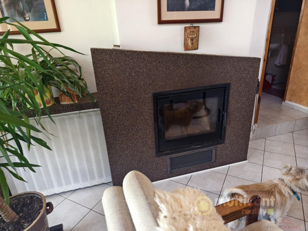 Hale v přízemí, jejíž podlahu tvoří vkusná a kvalitní dlažba, pohledově vévodí horkovzdušný krb s vložkou, napojený na domovní systém vytápění, což lze využít nejen v přechodových ročních období a lze jednoduše také přejít na hlavní způsob temperance, jež je zajištěna plynovým kotlem.