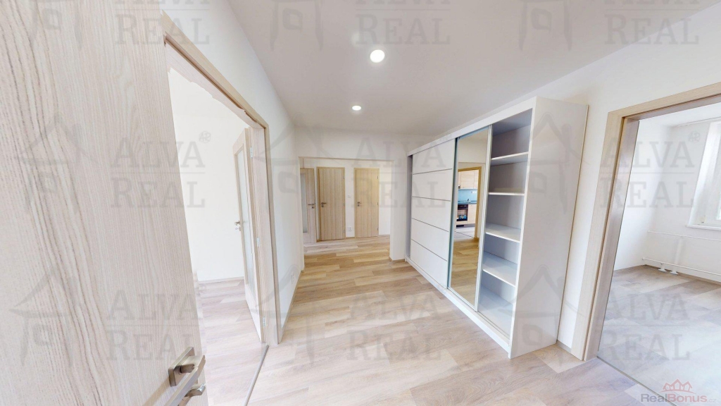 Vybavení: nová kuchyňská linka vč. spotřebičů (el. trouba, indukční čtyřbodová deska, digestoř), v chodbě prostorná šatní skříň, v komoře policový regál. V koupelně se nachází příprava pro pračku, i prostor pro sušičku. V obývacím pokoji internetová zásuvka.