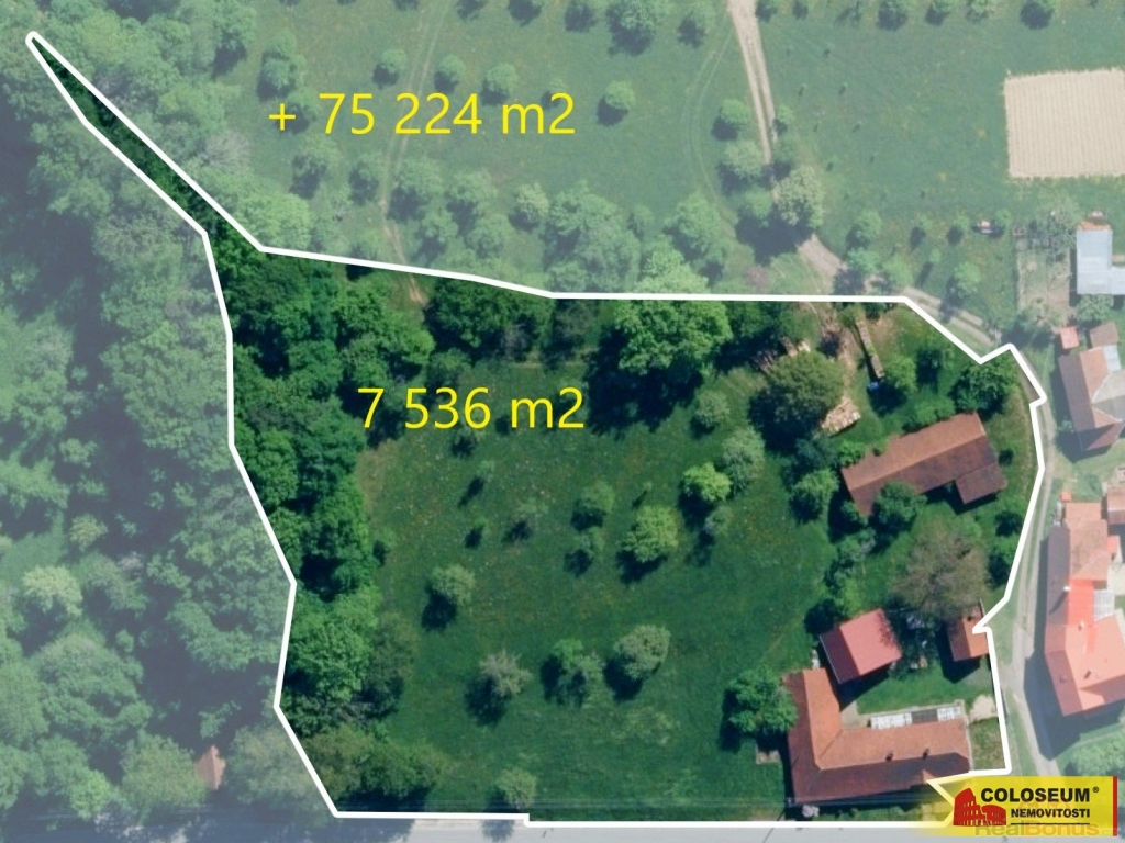 Mimo zastavěnou plochu k nemovitosti také náleží velká, mírně svažitá zahrada o rozloze 6224 m2, která je dle územního plánu vedena v plochách určených k individuálnímu bydlení. Nachází se zde vzrostlé stromy a stodola. Na zahradu úzce navazují pozemky s vlastní studnou o celkové výměře 69 938 m2, vedené jako trvalý travní porost. Zůstávající výměra parcel o rozloze 5 286 m2 je vedena pod lesním pozemkem.