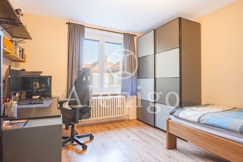 Dispozice bytu: chodba, 2 pokoje se samostatným vchodem, kuchyně, koupelna, samostatné WC. Okna z kuchyně a ložnice jsou orientována do zeleně v otevřeném vnitrobloku, okno v obývacím pokoji potom do klidné ulice Pakoměřická.
