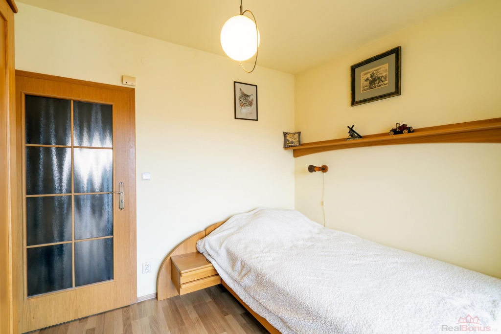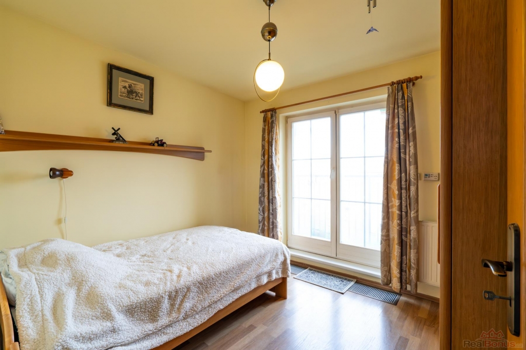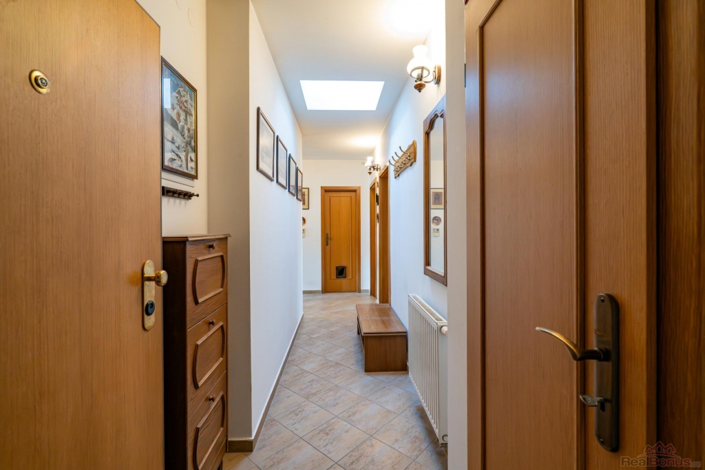 Byt vznikl jako nástavba domu v roce 2005 a je ve velmi dobrém stavu. Podlahová plocha činí 74 m2 a je doplněna dvěma terasami o velikosti 6 m2 a 8 m2, které poskytují příjemný venkovní prostor.