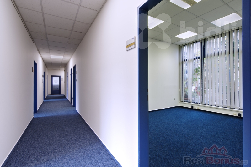 Kanceláře o ploše 17,29 m2 a 12,83 m2 jsou orientovány do zeleného atria, jsou připraveny k pronájmu čistě vymalované a s položeným novým kobercem.