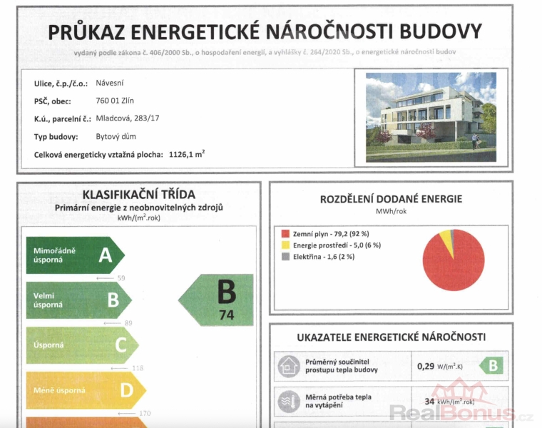 | Energetická třída | B - Velmi úsporná |