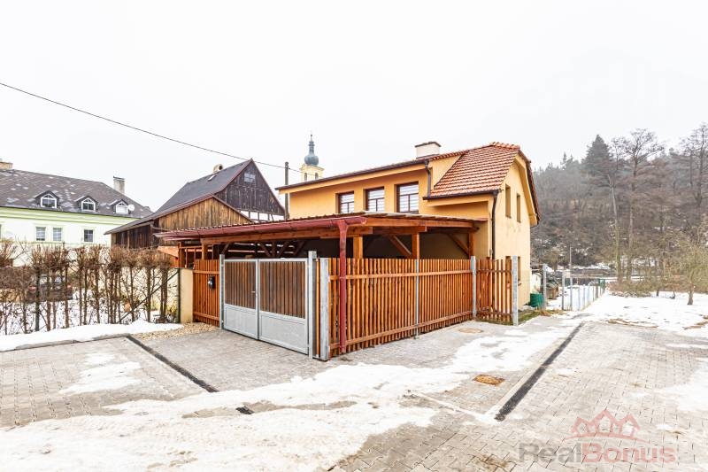 Součástí je pergola využitelná jako kryté stání pro auto, další parkovací místo je před domem. Nechybí ani zahradní domek a prostor pro posezení, grilování či klidné večery na čerstvém vzduchu.