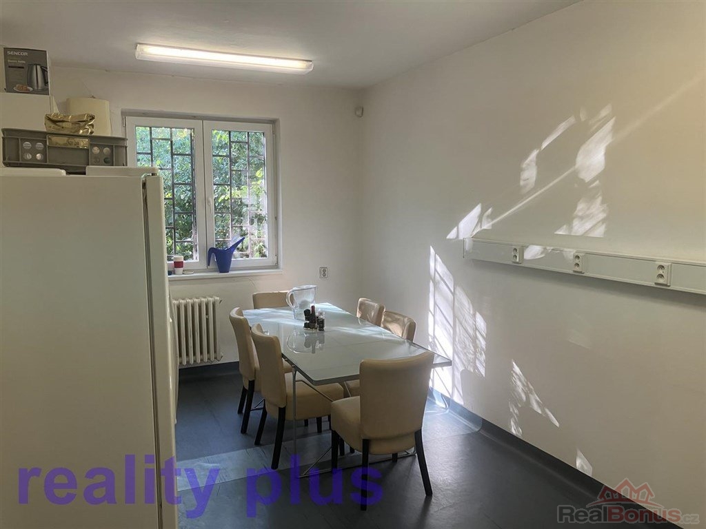 Pronájem kanceláří v ulici Služeb, v Praze 10 - Strašnice. Objekt se nachází ve vzdálenosti cca 150 m od konečné stanici metra A - Depo Hostivař + MHD (tramvaje, autobusy). Nabízíme k pronájmu kanceláře o výměře 551 m2 v 1. patře administrativní budovy s výtahem, které tvoří ucelený celek (celé první patro). Nebytové prostory se skládají z 16 kanceláří, sociálního zázemí, skladu a kuchyňky. Kancelářské prostory mohou být pronajaty jako celek, nebo rozděleny jednotlivě. Objekt je přístupný nepřetržitě s recepcí. Kanceláře se pronajímají nezařízené, na podlahách jsou koberce a PVC. Služby, voda, teplo, odvoz odpadu, zabezpečení objektu, se platí paušálem 41.325,- Kč měsíčně. Spotřeba elektrické energie bude přefakturována dle skutečných nákladů. Parkování až pro 14 automobilů je možné v areálu dle dohody za dohodnutou cenu parkovného (5.000,- Kč/osobní auto/rok). Volné od května 2025. Provize RK 110.200,- Kč. Všechny ceny jsou uvedeny bez DPH! Při podpisu nájemní smlouvy se hradí vratná kauce ve výši měsíčního nájmu a služeb. Bližší info u makléře. ET-G.
